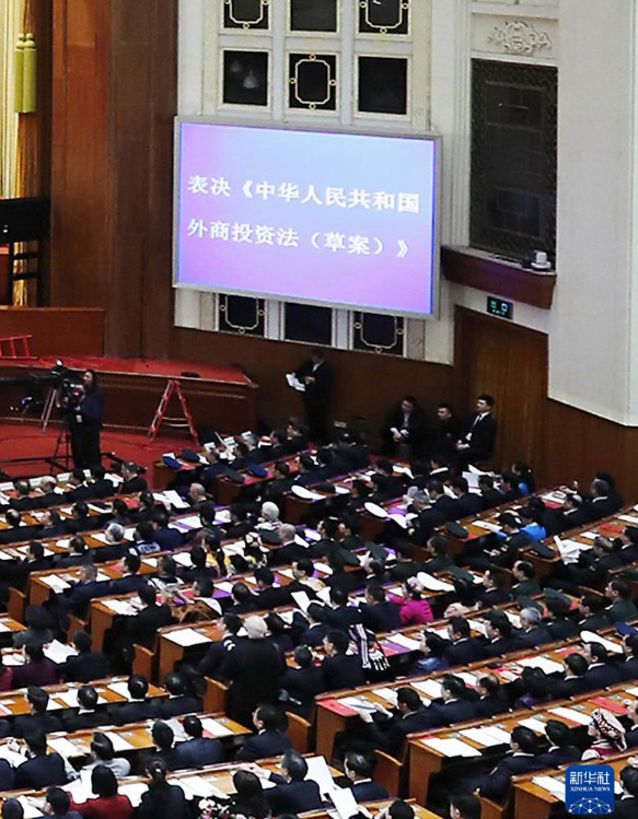 十三届全国人大二次会议在北京人民大会堂举行闭幕会(2019年3月15日摄)。大会通过外商投资法。新华社记者 刘彬 摄