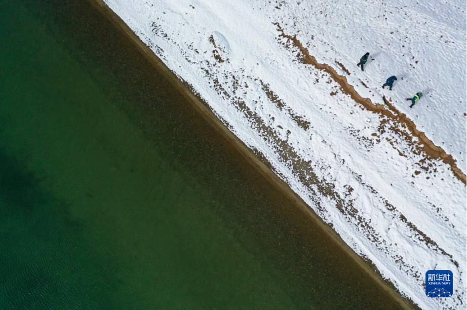 在青海省果洛藏族自治州玛多县扎陵湖乡勒那村,三江源国家公园黄河源园区生态管护员在巡护(2021年10月20日摄,无人机照片)。 新华社记者 张龙 摄